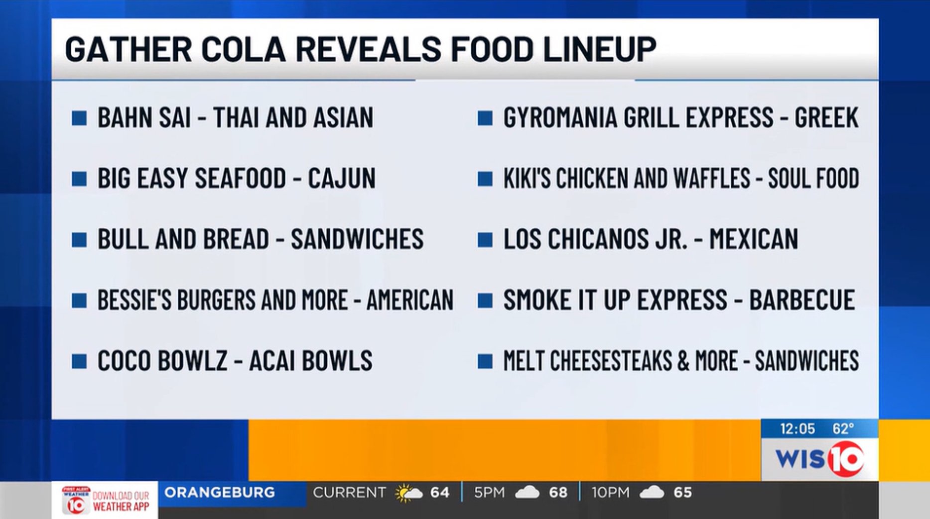 “One of Gather Cola's offerings, Los Chicano's Jr., stopped by the WIS studio to give a taste of what's to come when the food hall opens on Friday.”